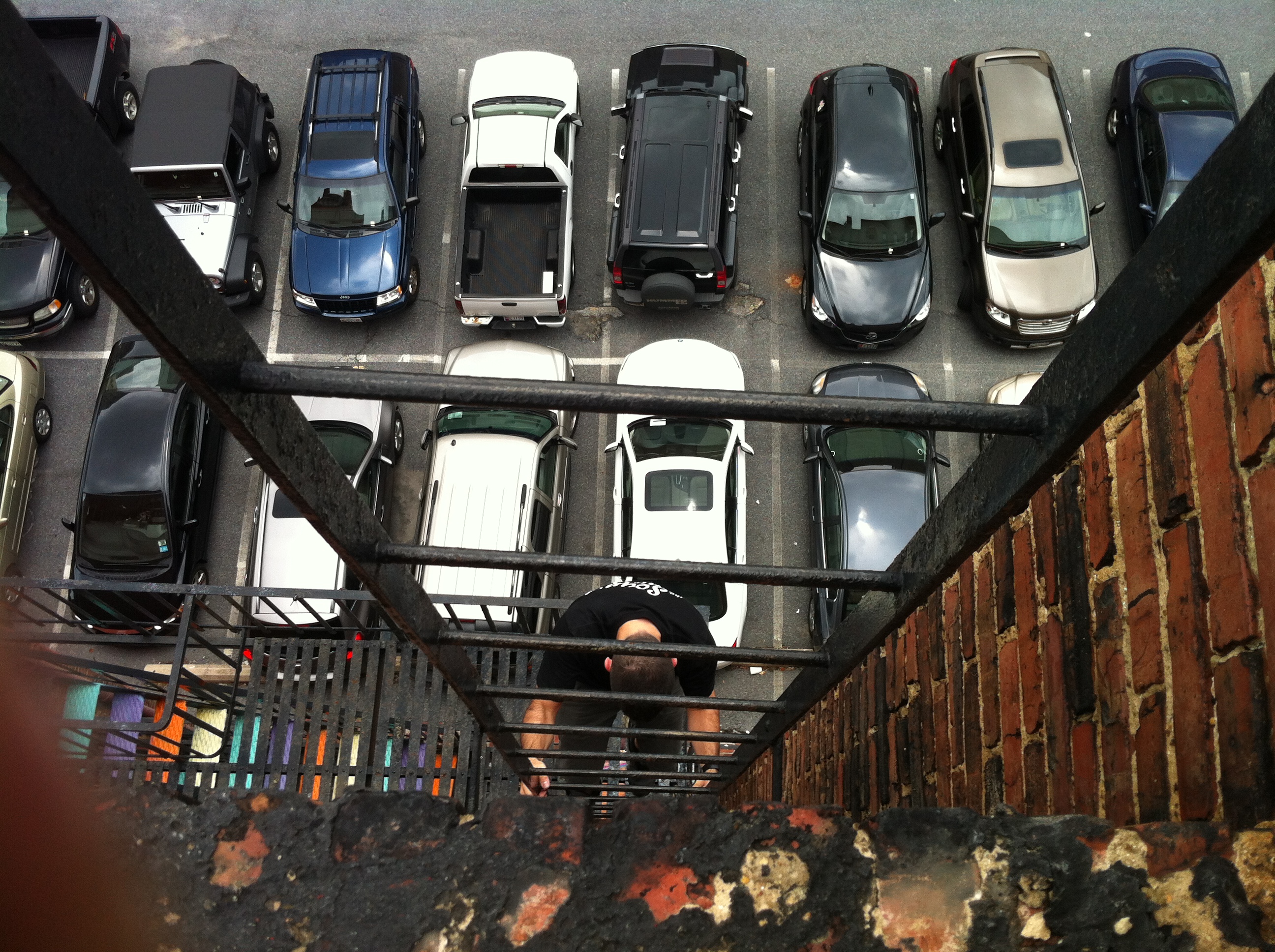 My host “Doug” rolled out the red carpet for me. His apartment was down the street from his job, so after I had enough to eat and drink, I just went up to his place and crashed. The next morning found me on his roof, testing out the local product, and getting a view of the city. My vertigo kicked in shortly after, and the trip down the fire escape was a little sobering. I kept imagining a loose bolt on the railing coming off, sending me back backwards onto the asphalt below (cringe).